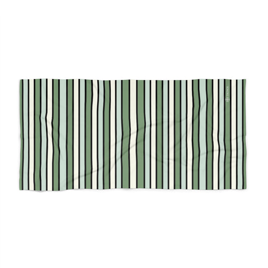 Funky 70's Retro Striped Beach Towel in Shades of Seafoam Green