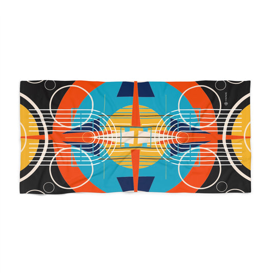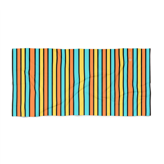Funky 70's Retro Striped Beach Towel in Goldenrod/Teal/Orange