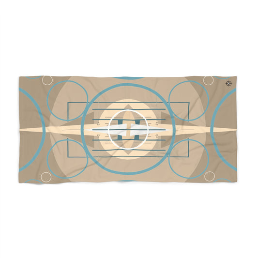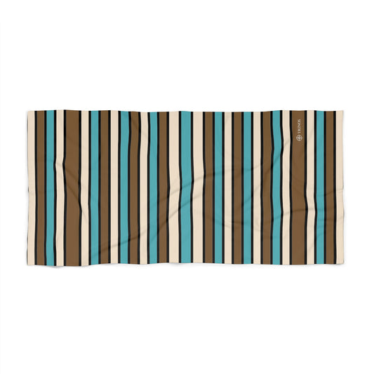 Funky 70's Retro Striped Beach Towel in Blue/Cream/Coffee Brown
