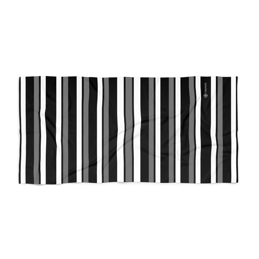 Funky 70's Retro Striped Beach Towel in Monochrome Black/White/Grey
