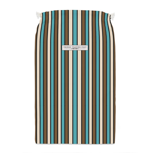 Funky 70's Style Retro Striped Super Delux Laundry Sack in Light Blue/Cream/Coffee Brown