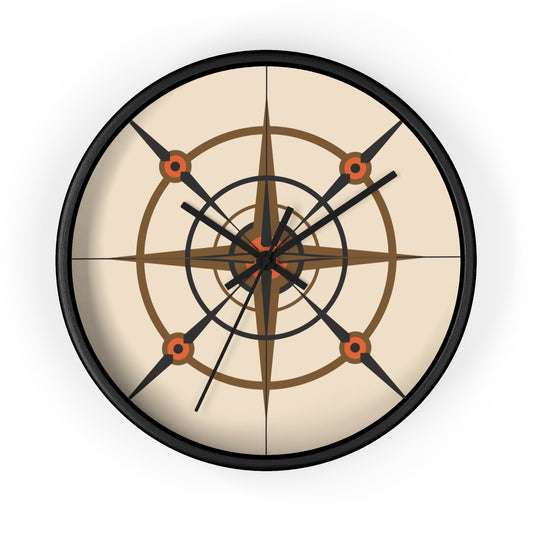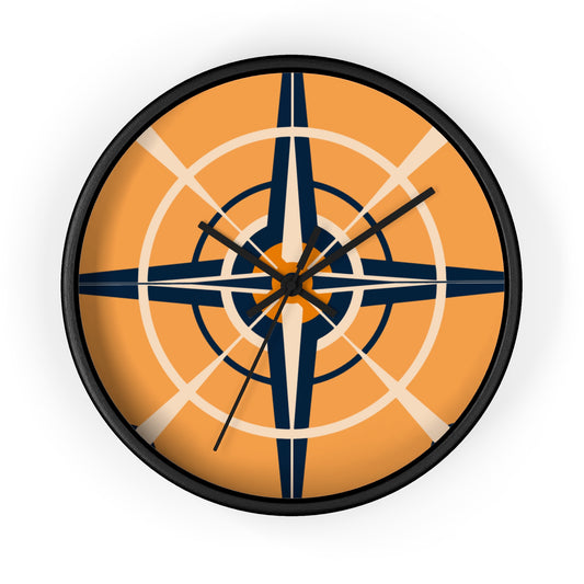 Creamsicle Cream and Blue Compass Rose Wall Clock