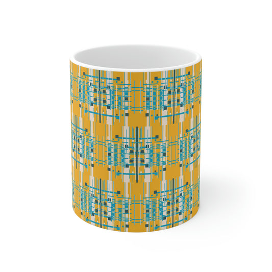 Bamboo Inspired Graphic Ceramic Mug in Yellow Grass