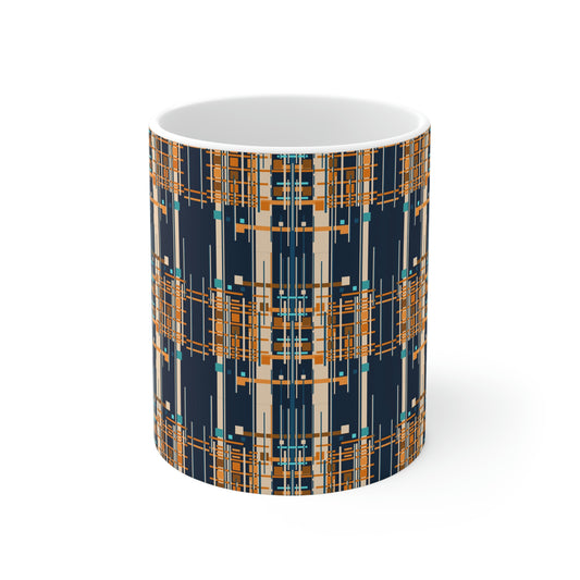 Bamboo Inspired Graphic Ceramic Mug in Dark Blue