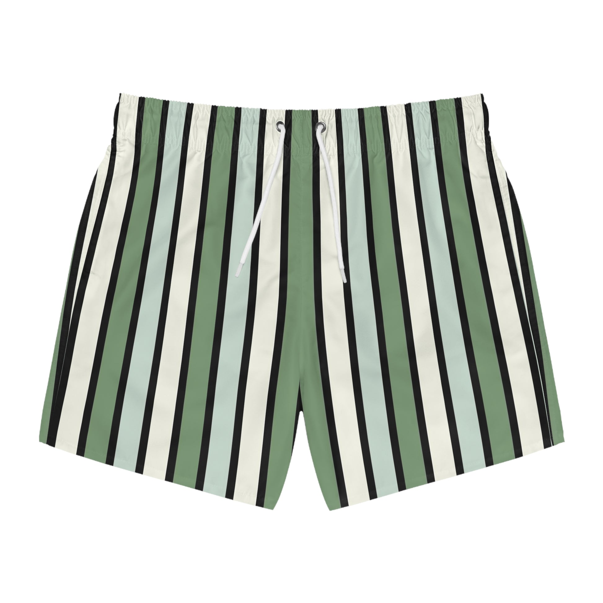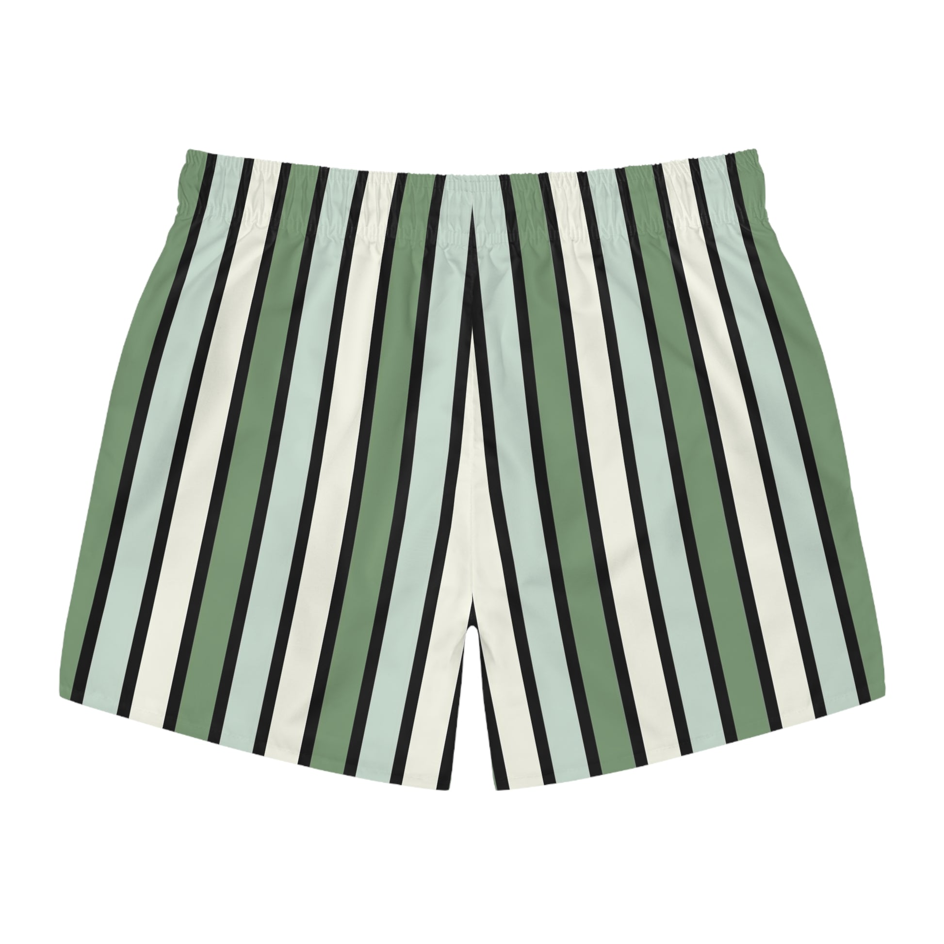 Funky 70's Style Retro Striped Swim Trunks in Shades of Seafoam Green